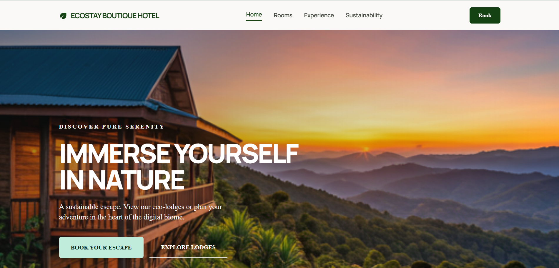 The objective was to design a comprehensive digital platform for EcoStay, a luxury boutique hotel dedicated to eco-friendly tourism. The challenge was to balance high-end aesthetics with an organic, nature-focused atmosphere while ensuring a complex booking and reservation flow remained simple and intuitive for the global traveler.